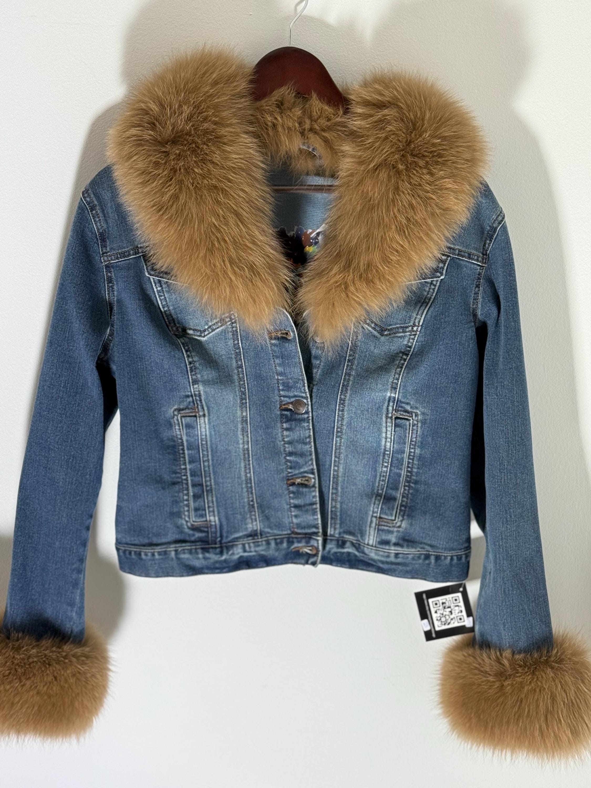 This Blue Up cycled Denim Jacket is a stunning fusion of classic style and modern elegance. This one-of-a-kind piece features a soft, stone-washed denim finish that exudes a vintage charm while promoting sustainability through its upcycled materials.