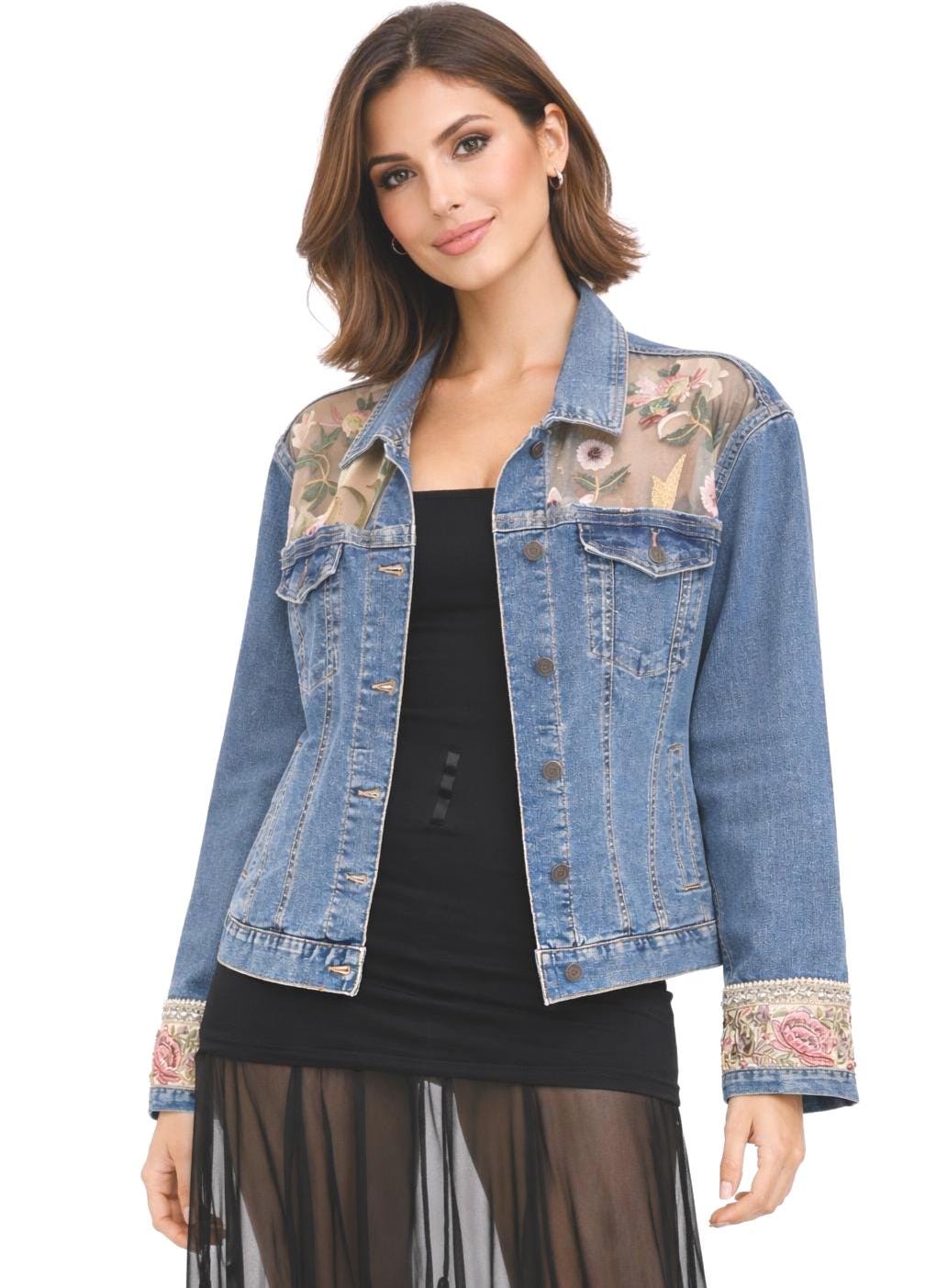 Floral Embroidered Denim Jacket, Upcycled Couture Statement Piece, Wearable Art Back